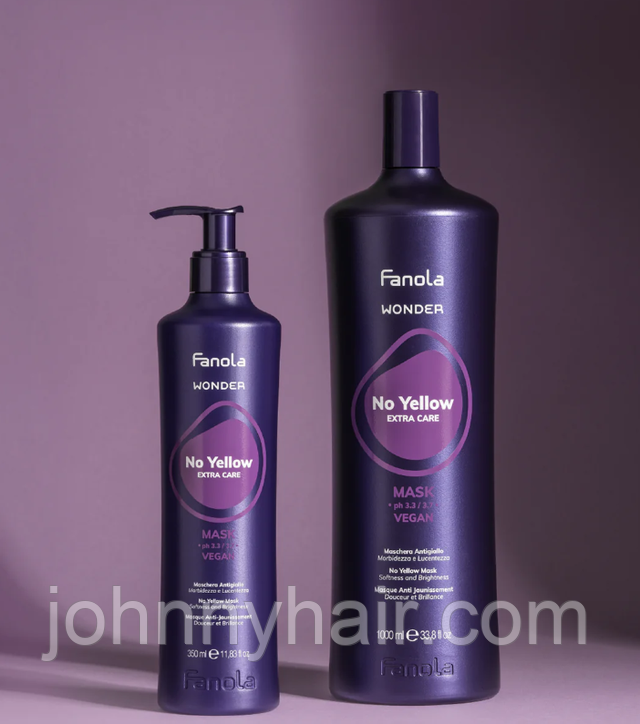 Fanola Wonder No Yellow Mask – це професійна маска, створена для нейтралізації жовтих відтінків на блондинистому та сивому волоссі. Завдяки своїй спеціальній формулі, маска ефективно зменшує небажані жовті та оранжеві відтінки, надаючи волоссю холодний, платиновий відтінок. Вона не тільки нейтралізує кольори, але й інтенсивно живить волосся, повертаючи йому м'якість, блиск і здоровий вигляд.